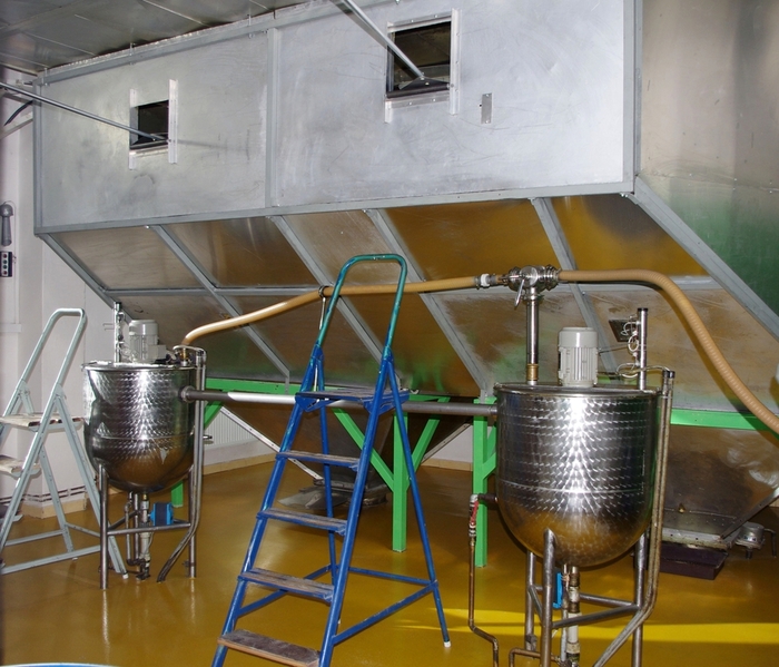 Příprava směsi tuku a drcených arašídů pro obalení křupek